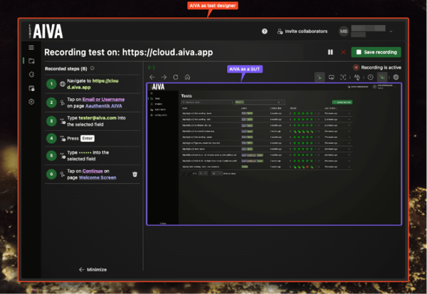 Imagine a system like AIVA, designed to test software systems, testing itself. During each test run, AIVA plays two roles at the same time: