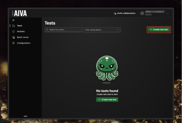 Testing AIVA using AIVA is, by design, a quick and simple task. Just open the web application and click "Create new test."