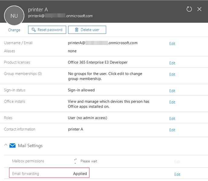 - Verify that Email forwarding now shows 'Applied'